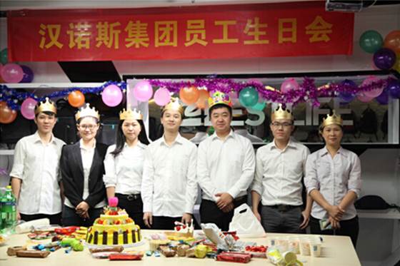 为弘扬公司文化,让员工感受到汉诺斯大家庭的温暖,给员工长期以来的辛勤工作给予肯定和感谢,表达公司对员工的点滴关怀,2014年11月5日公司为11月生日的员工举行了集体生日会,当月的寿星们同各部门人员聚齐在一起,大家其乐融融、畅所欲言,陶醉在这喜庆的氛围中。